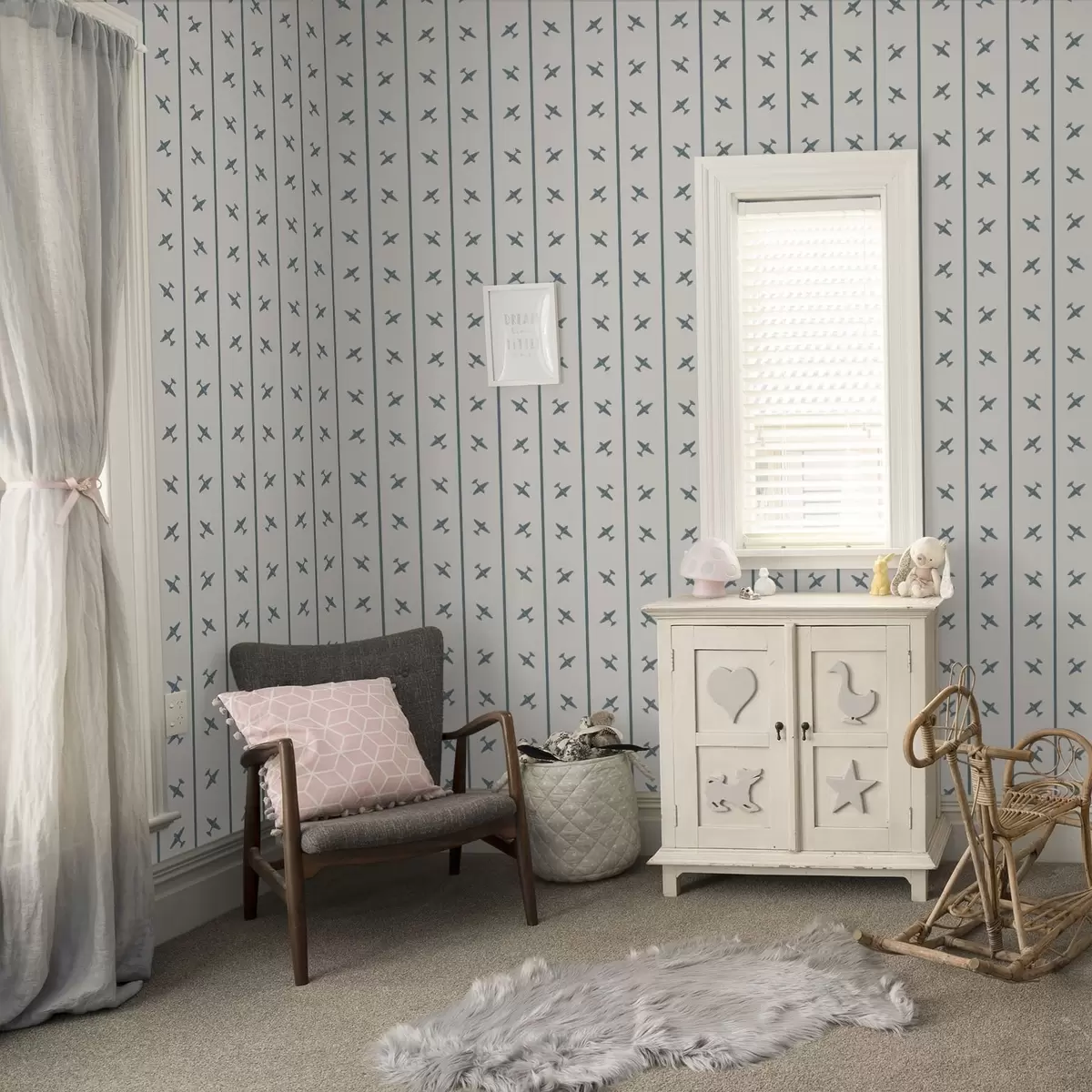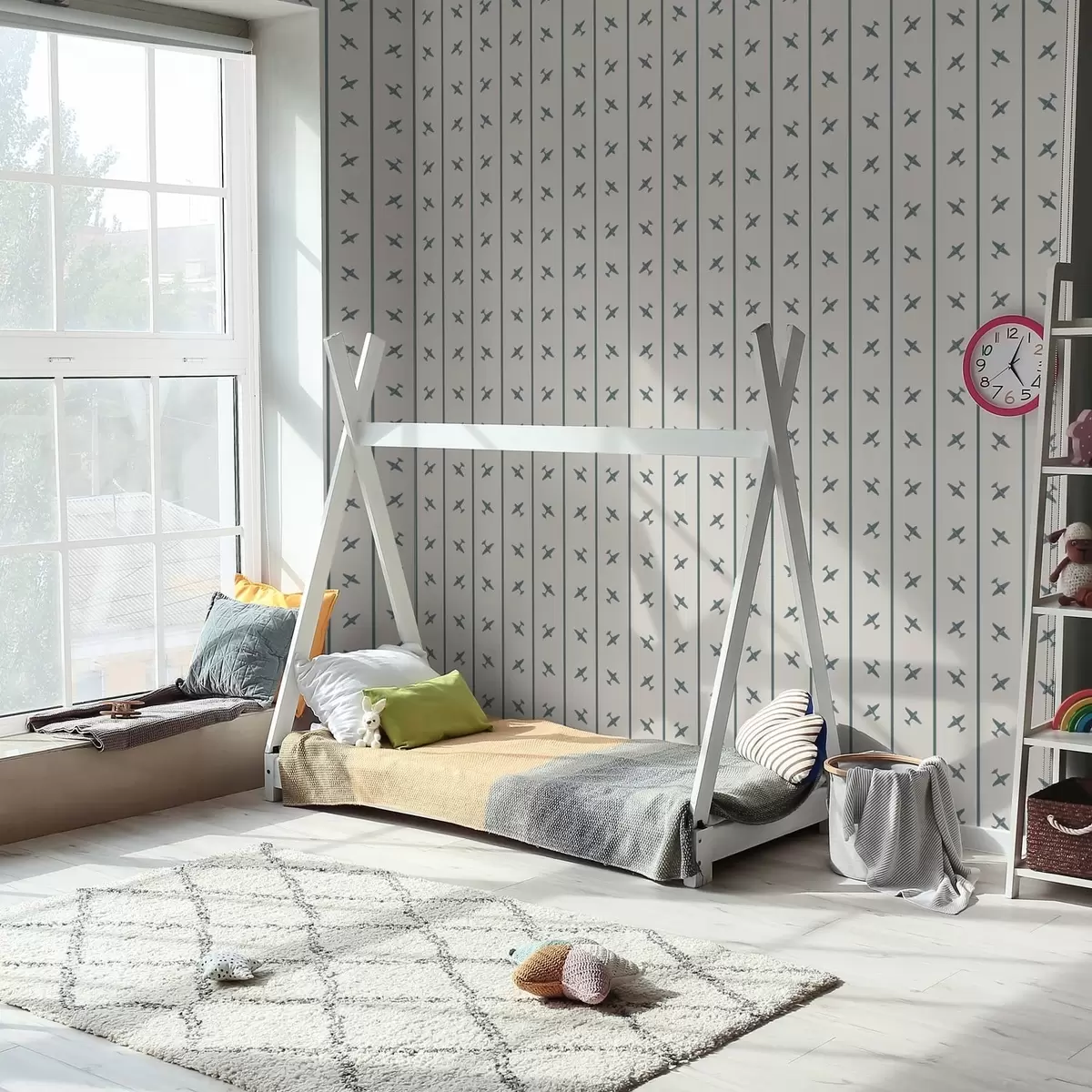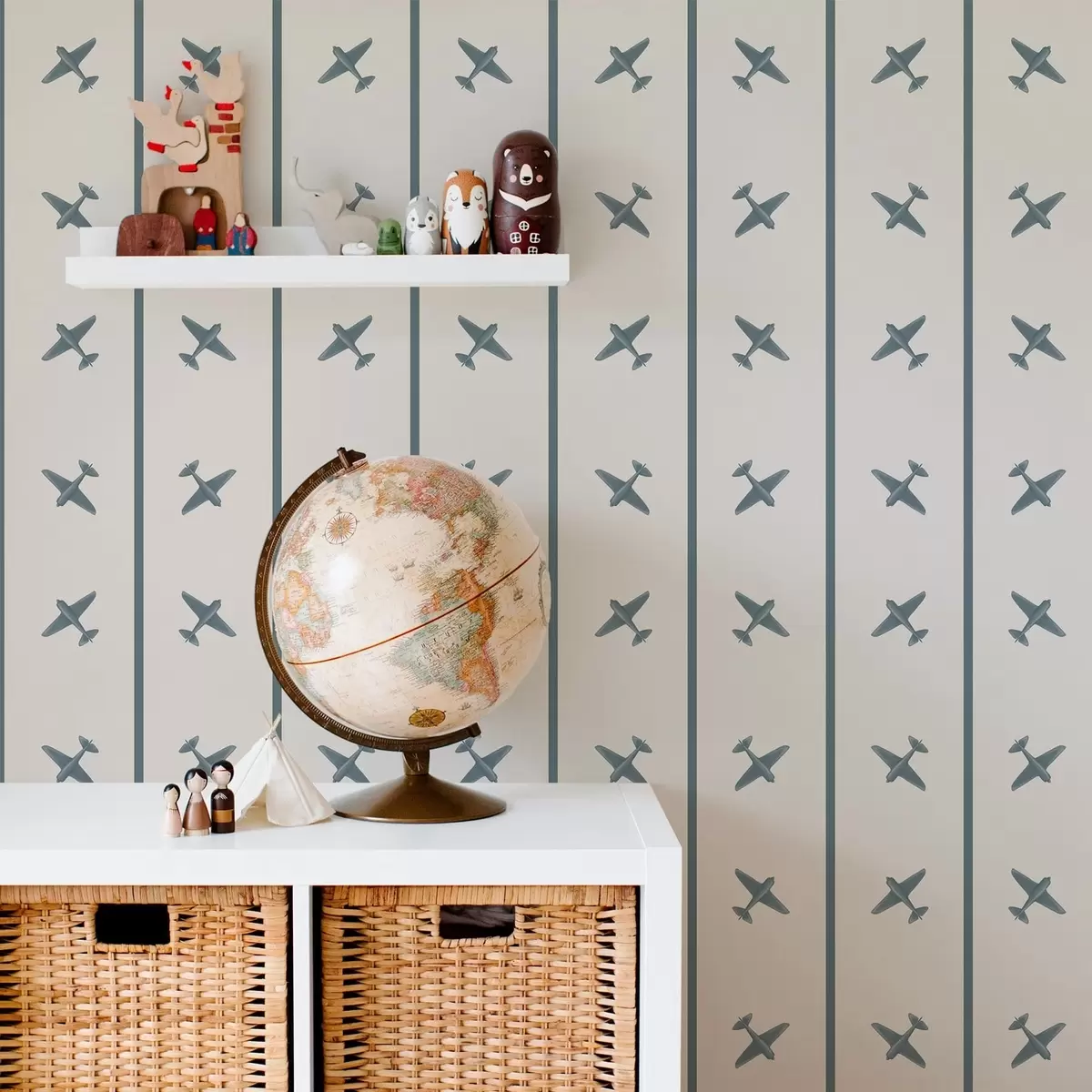 Tapet Avioane cu model în dungi și accente albastre Nr. a01169