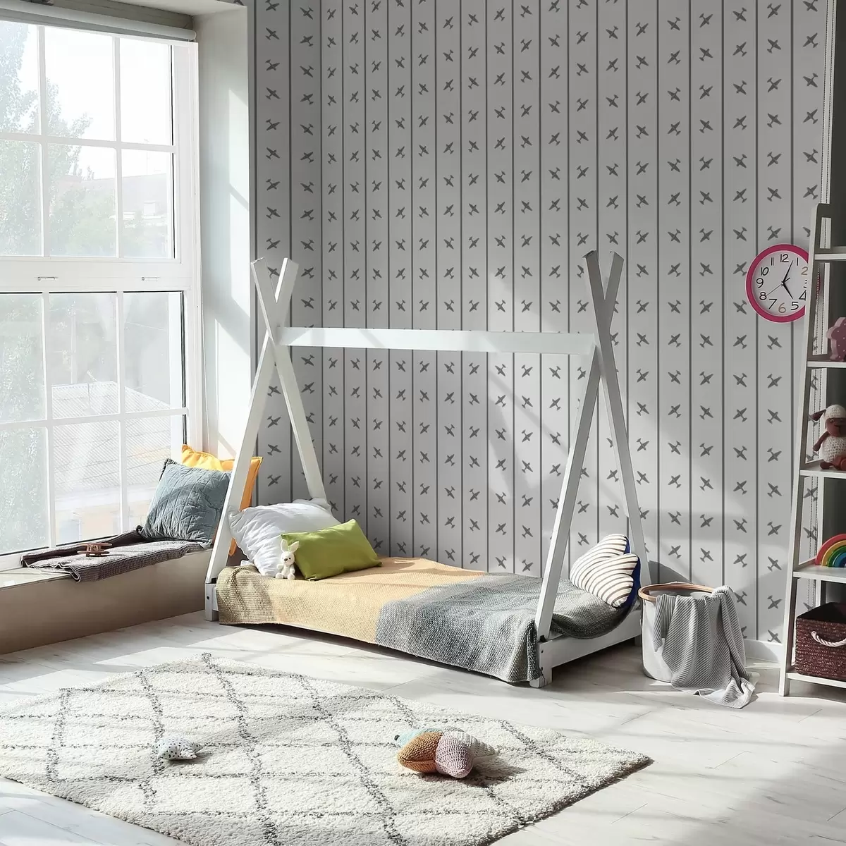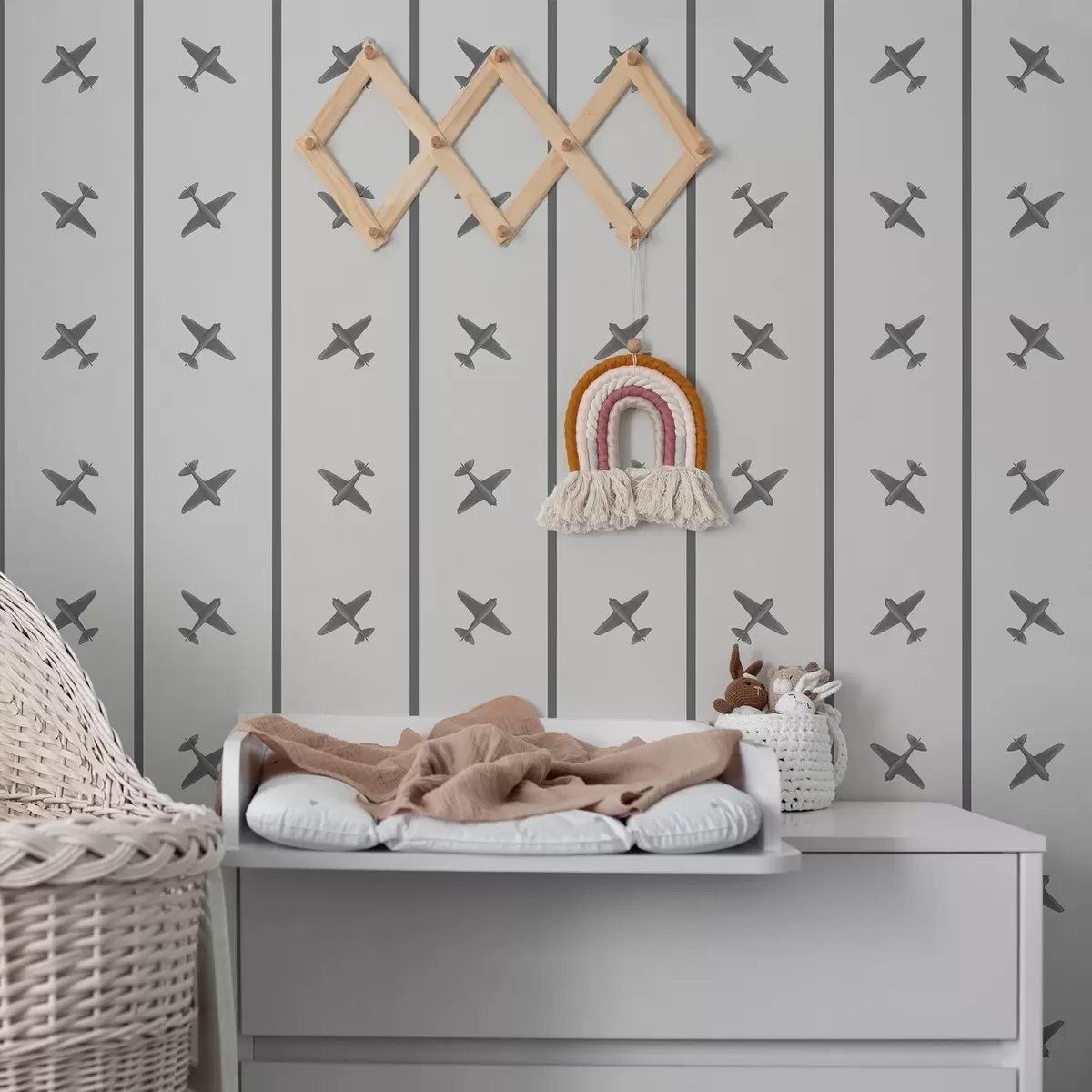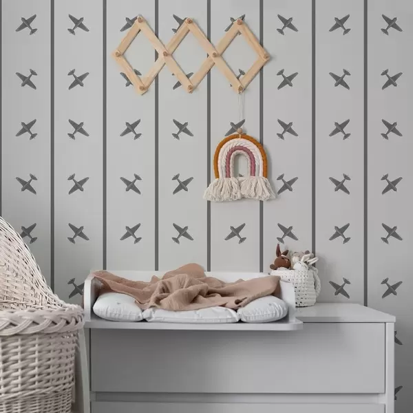 Tapet Avioane cu model în dungi în nuanțe de gri Nr. a01169v2