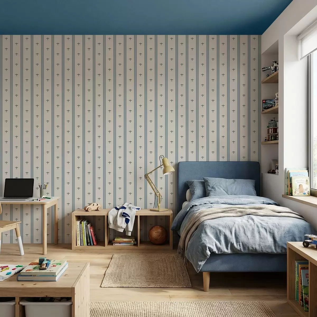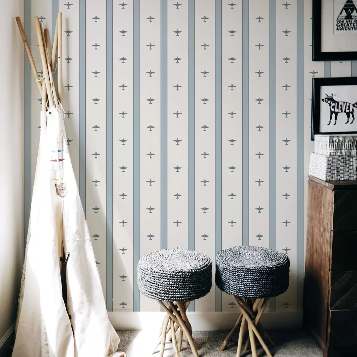 Tapet Avioane mici cu dungi pe fond albastru Nr. a01171