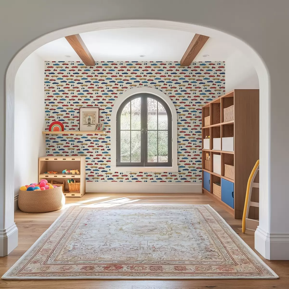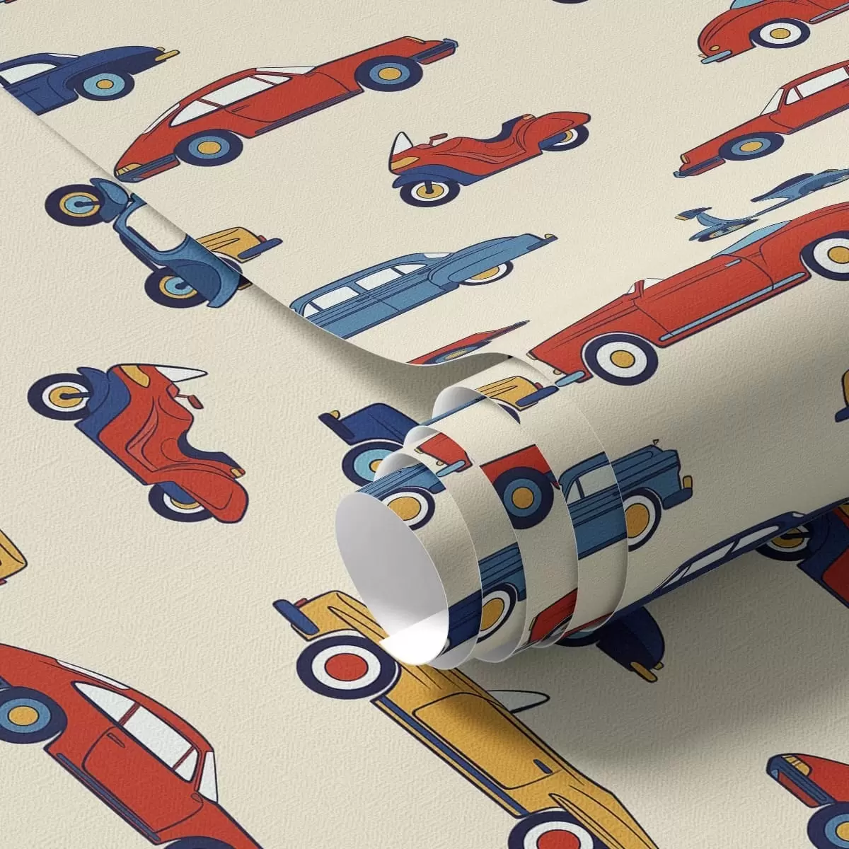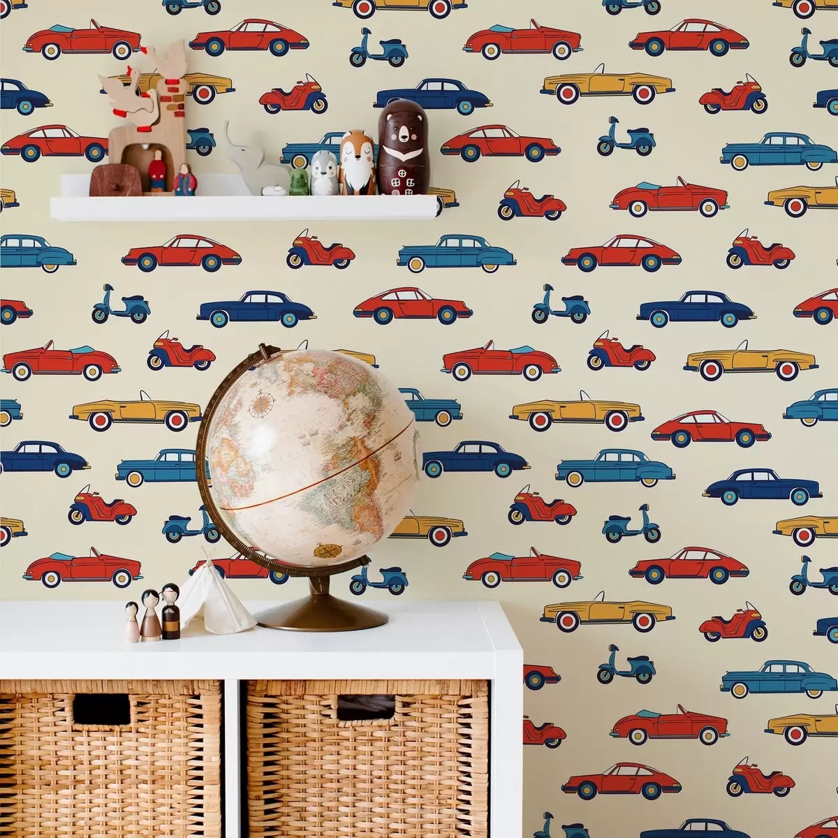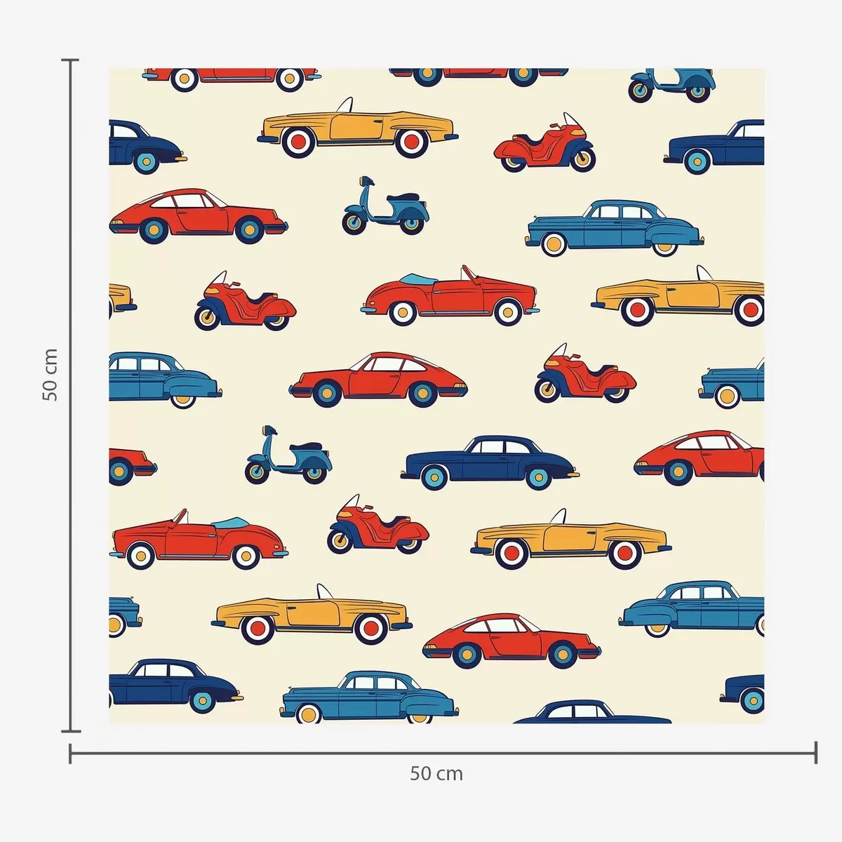 Tapet Mașini și scutere retro în culori vii pe un fundal deschis Nr. a01172v1