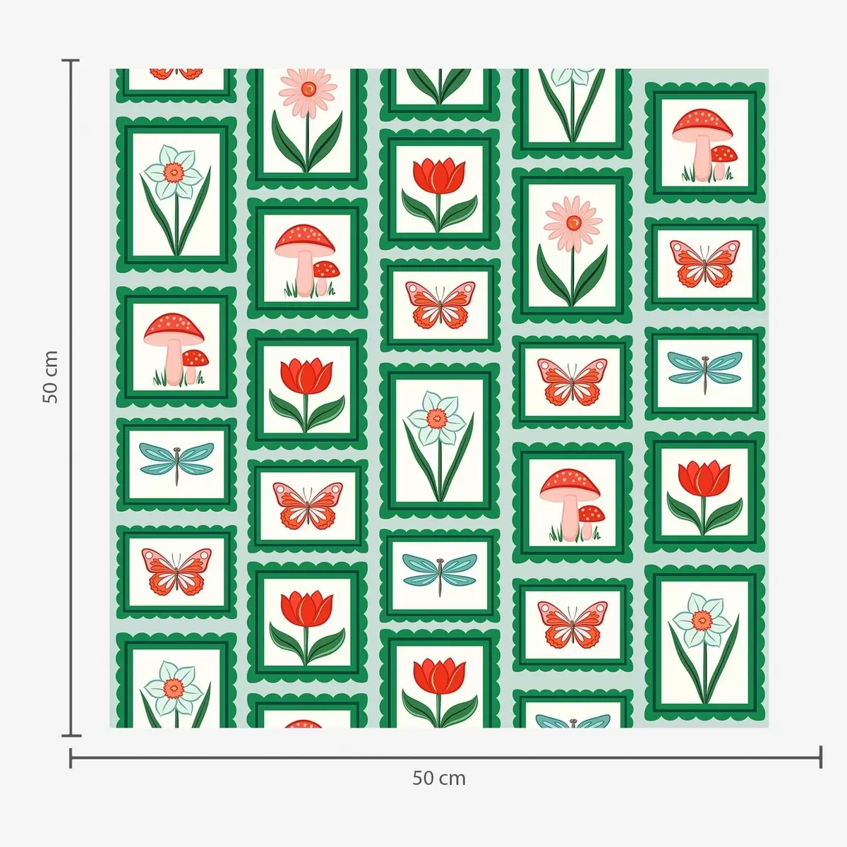 Tapet Flori, ciuperci și fluturi înrămate Nr. a01175