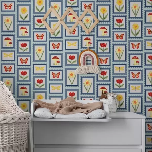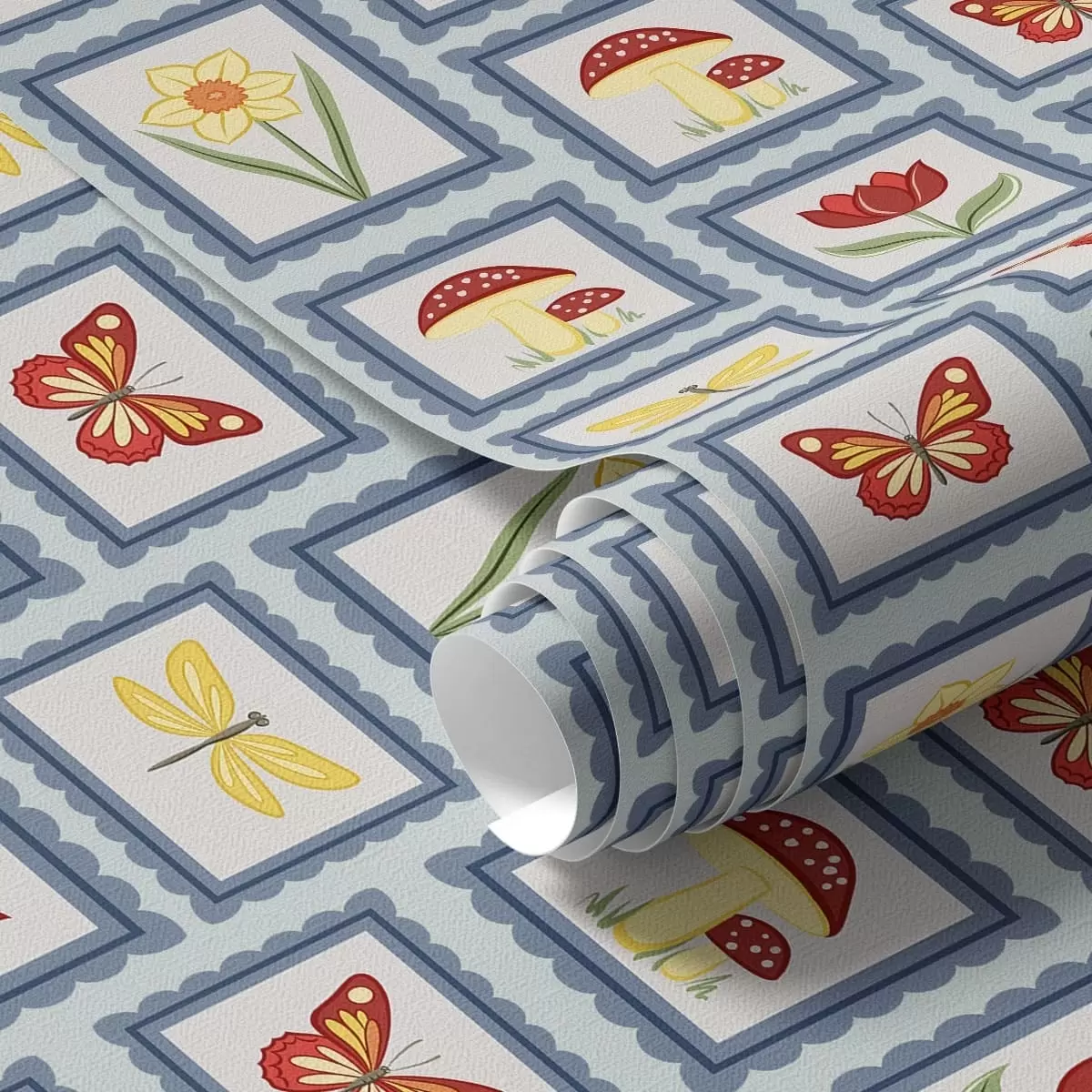Tapet Ilustrații înrămate în nuanțe de albastru Nr. a01175v2