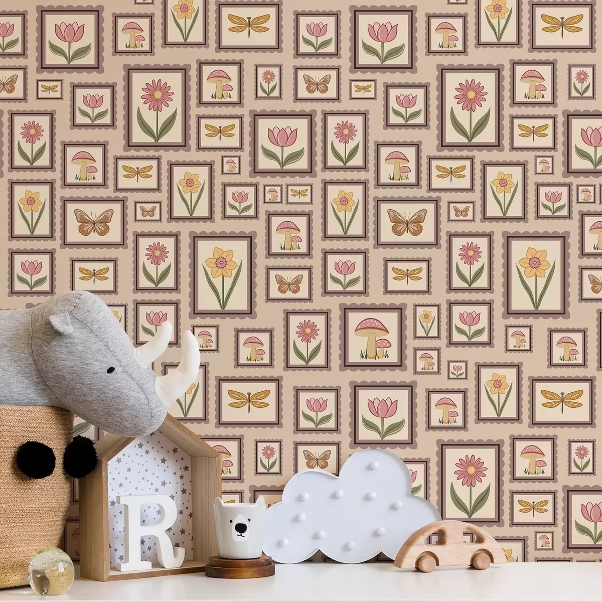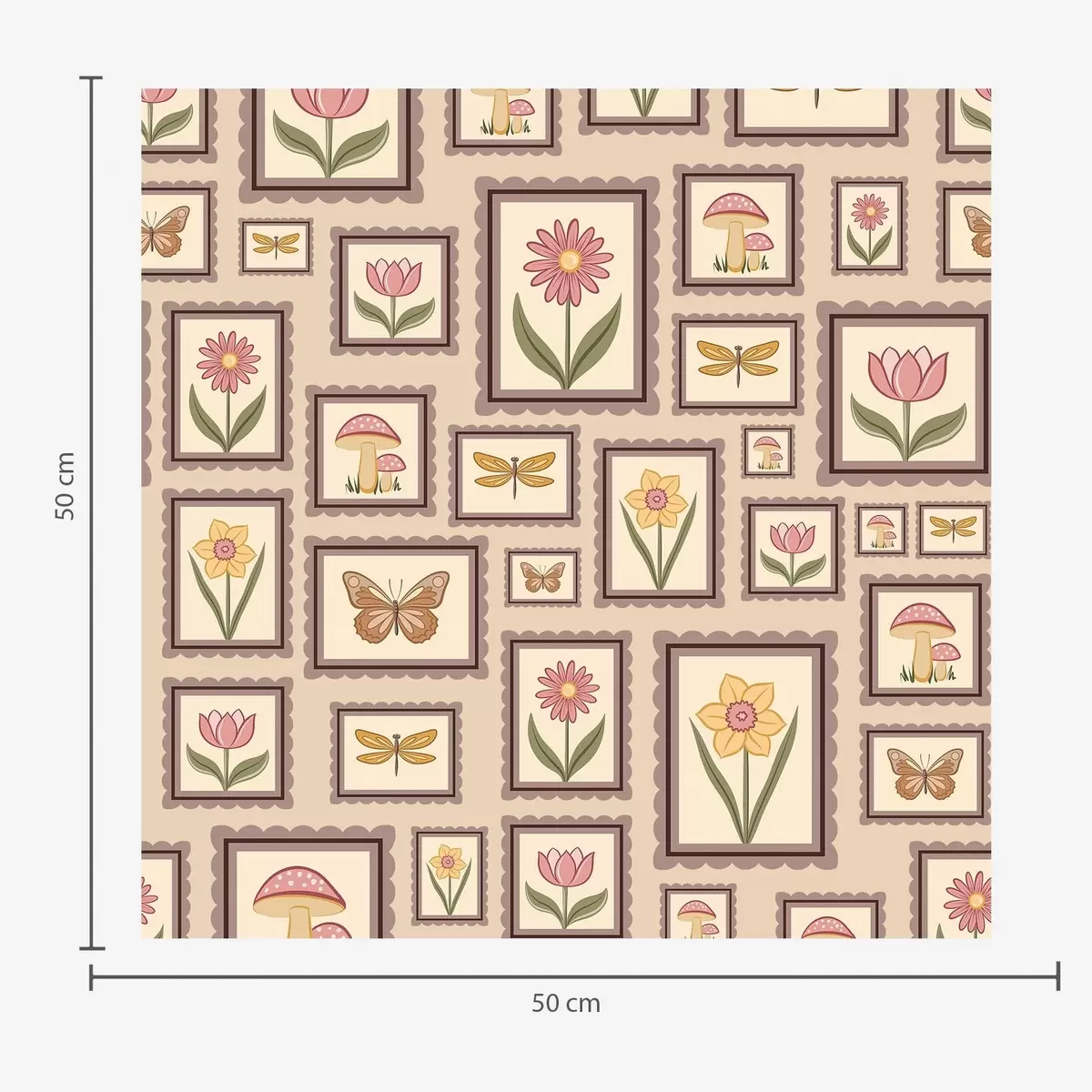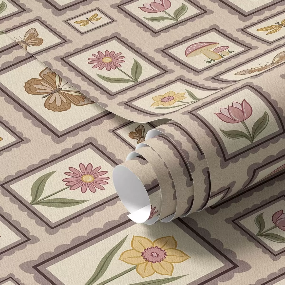 Tapet Ilustrații înrămate în nuanțe calde de bej Nr. a01176v2