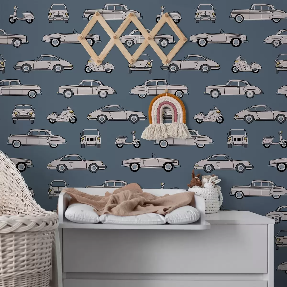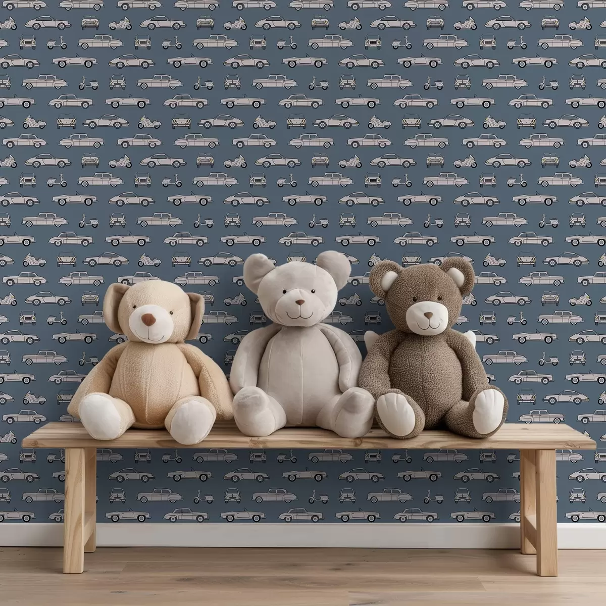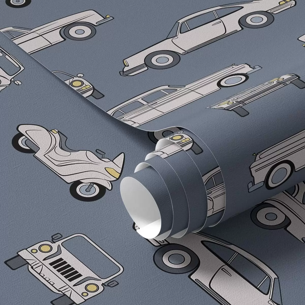 Tapet Mașini și scutere retro pe fundal albastru Nr. a01178