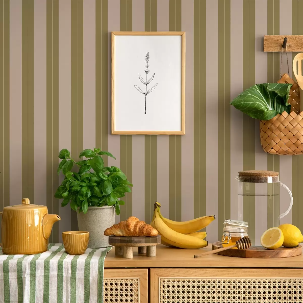 Tapet Dungi verticale de culoare măslinie și bej Nr. a01181v2